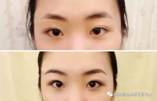 第三,眉毛和眼睛距离太远。西方人大多数为大而平行的多层双眼皮,双眼皮位于眉毛和眼睛之间,而东方人多数是广尾形的小双或隐双,眉毛太高,不是很有立体感。