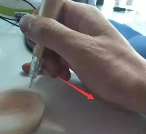 很多纹绣师在操作仿真眉的时候,都是有个人的操作技巧。通常来说,大部分纹绣师的习惯则是利用小拇指作为支撑点,以手腕发力带动针头走向。